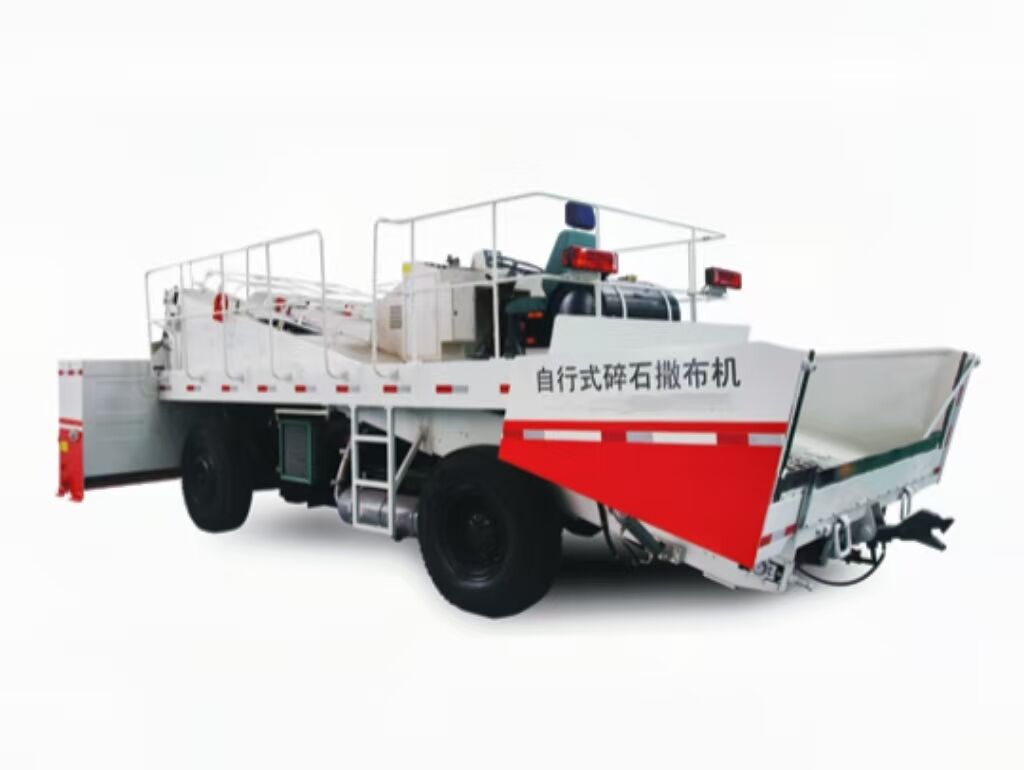SS6000 self-propelled macadam spreader developed by our company is a special machine for spreading stones with particle size below 30 mm. It is one of the key supporting equipment for asphalt pavement construction. According to the construction requirements, stones of certain specifications can be continuously, quantitatively and evenly spread on the pavement and subgrade sprayed with asphalt. It is mainly used for the spreading of crushed stone in the construction of upper seal layer of low-grade highway and the spreading of crushed stone in the construction of new asphalt pavement by surface paving method. It can also cover the surface of high-grade highway. This model is currently the widest single chip spreading width in China (the maximum spreading width can reach 6 meters), the highest spreading efficiency and the highest degree of automation and intelligence.